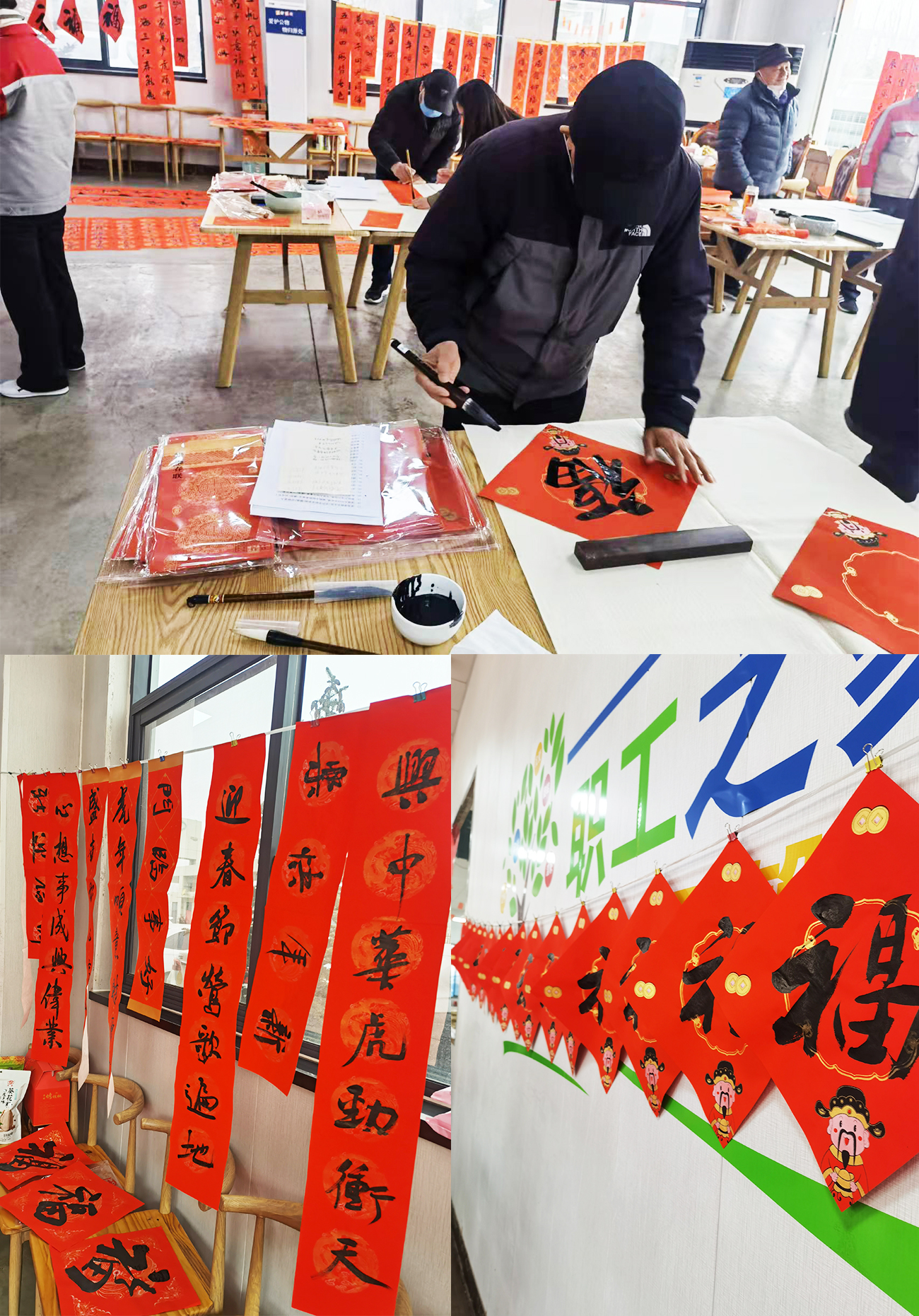 2022年1月12日上午10:00—11:30我公司在食堂大廳舉行“天意、天元星迎新春送春聯活動”,區文聯主席及市、區文聯書法家蒞臨我公司現場手寫春聯并贈送員工,活動現場氣氛熱烈,書法家們將新年的祝福寫進了一幅幅春聯和福字之中,書法家們的作品也受到了在場員工的連連稱贊!紅色喜慶的一幅幅春聯寓意著新的一年,紅紅火火!