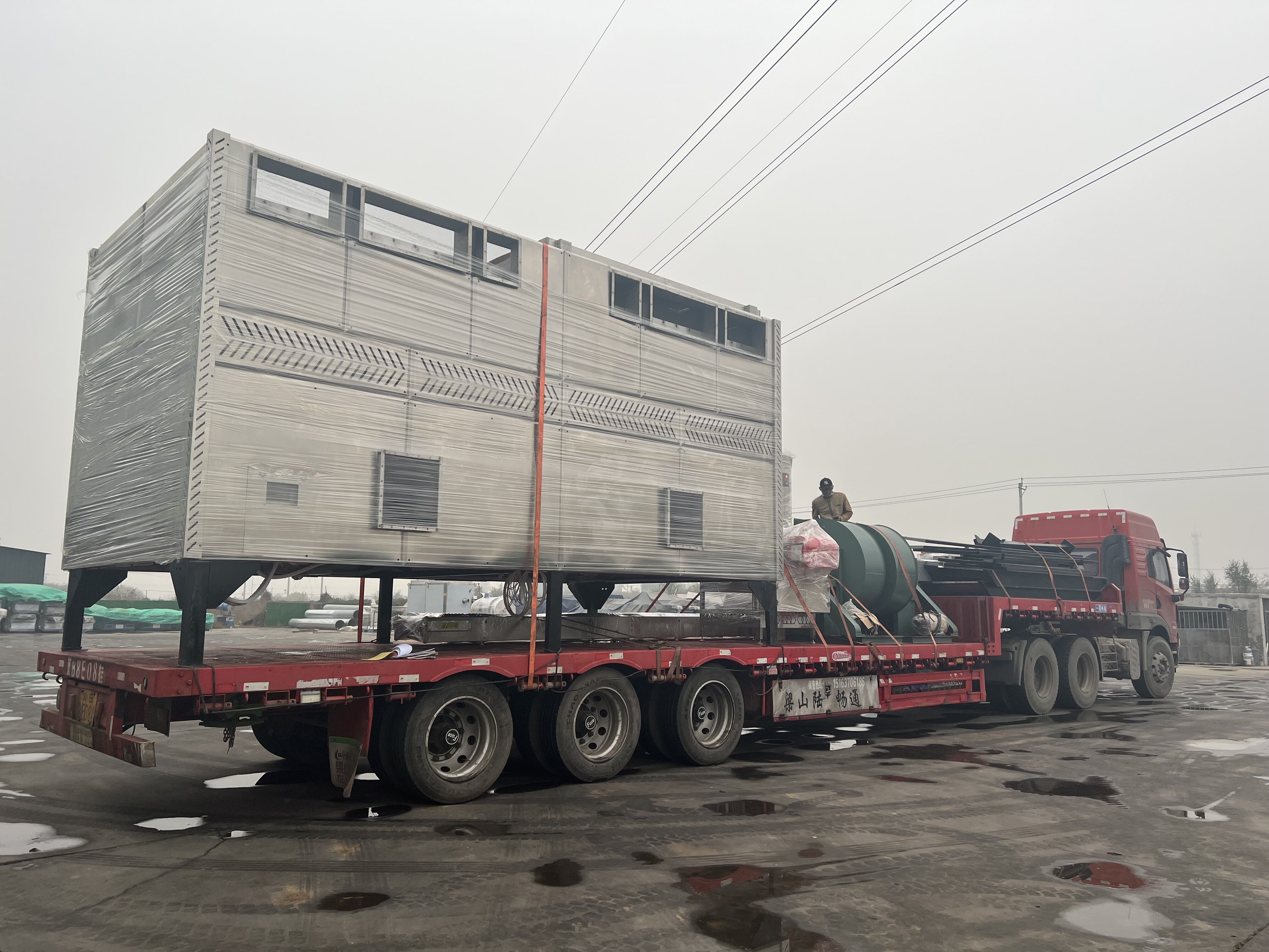 山東省荷澤市蜂窩鴛鴦烤池1臺,裙邊出料皮帶1臺,6號風機2臺,平面燃燒熱風爐(一拖二)1臺,操作平臺一套,風道一套發貨,